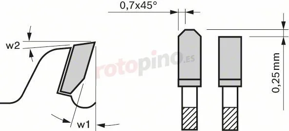- Anchura de corte (b1) mm / Grosor del disco de soporte (b2) mm: 2,5/1,8
